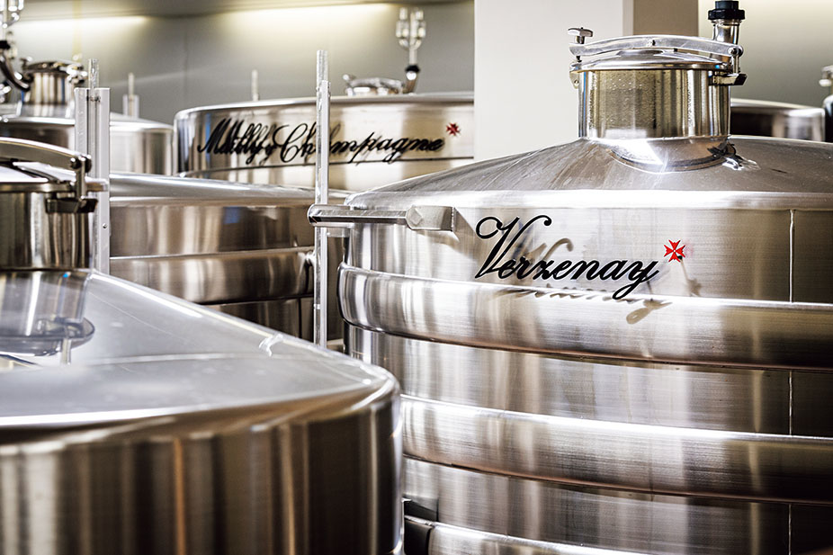 最新鋭の単一区画別タンクでグラン・クリュとプルミエ・クリュを中心に55ものクリュ別に管理。