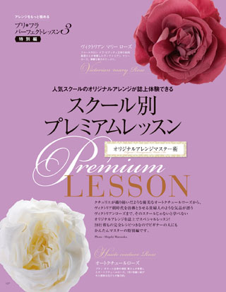 今回のプリフラは「アレンジをもっと極める プリ*フラ パーフェクトレッスン」!プロが教えるちょっとしたコツから市販のバラを利用してつくる世界でひとつだけのオリジナルローズやオリジナルアレンジをマスターできるプレミアムレッスンまで、プリフラアレンジを多角的に身につけられます。もっともっと自分らしくアレンジするヒントがいっぱいです。